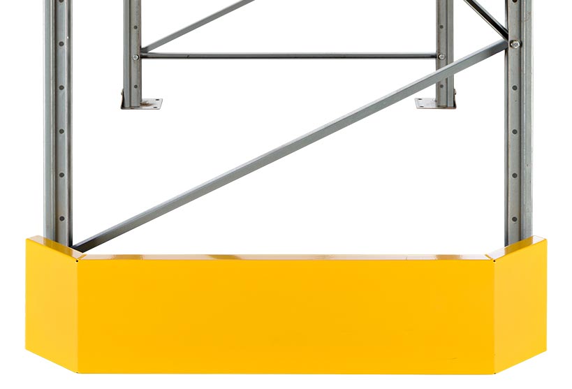Gavelskydd i kraftigt stål som skyddar pallställets gavlar mot påkörning och som därmed förlänger dess livslängd. Gavelskydd är en god investering till din lagerverksamhet.