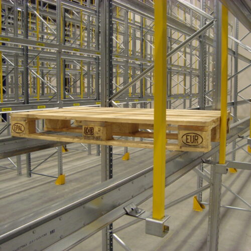 Genomskjutningsskydd till pallställ skyddar mot olyckorFörhindra att pall skjuts genom ställaget med stöttåliga, galvade eller lackade pallstopp – en enkel åtgärd för att skydda både personal och godset mot onödiga olyckor. Genomskjutningsskydd (Pallstopp) är enkla att montera och finns i flera olika dimensioner beroende på hur många pallar i bredd eller hur högt ditt pallställ är.